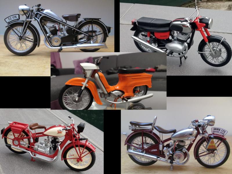 Ahoj, udělal sem několik modelu motorek, počínaje první Jawou 500OHV-Rumpal, přes ČZ 175 1939, Jawa 175 Speciál, Jawa 350 Californian a jako poslední zatím Jawa 21 - Pionýr.