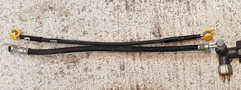 | Vyrobca hadic je Goodridge : https://www.goodridge.co.uk/ Hadice na mieru daju objednat aj priamo cez ich stranku tu https://www.goodridge.co.uk/collections/buildaline-kits ale to je riesenie s klasickou pancierovou hadicou a srobovacimi fitingami. Ja som nasiel na ebay predajcu ktory inzeroval hadice na moju motorku priamo (ako kit), ked prisiel zistil som ze nesedia dlzky a jeden fiting. Tak som mu ich vratil a on mi ponukol ze moze dat vyrobit na mieru presne ako chcem - dlzka, fitingy a co bolo pre mna dolezite - vzhlad ako original (akurat mensi priemer). Volaju to "vintage black" Kontakt na ebay shop: http://www.ebaystores.com/RiceRocketUk Kontakt na pana s ktorym som to riesil : mjd128(zavinac)outlook.com, vola sa Dave. DOLEZITE - treba mu PRESNE specifikovat hadice aj fitingy (je ich vela typov, vratane stupania zavitov). Najlepsie spravit fotky vasich povodnych, vratane fitingov. Prikladam foto - porovanie jednej mojej povodnej hadice (1977) a novej | |